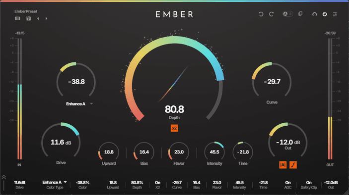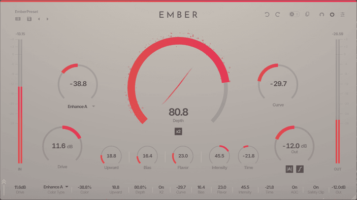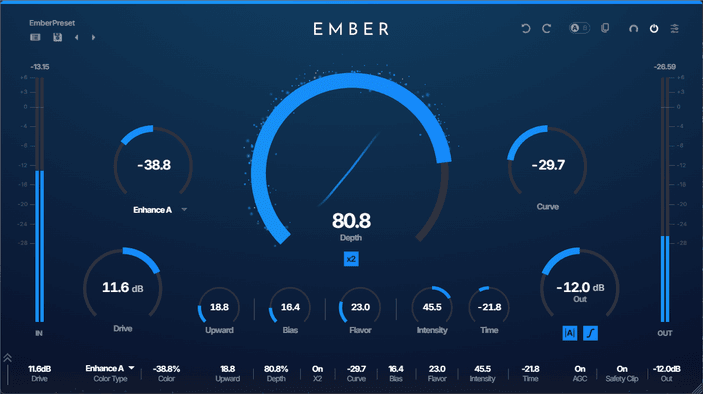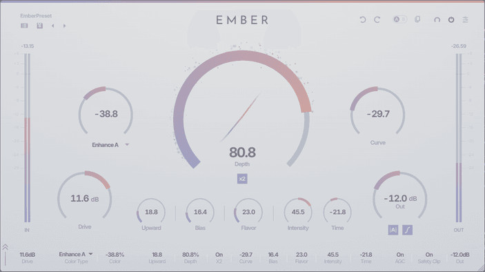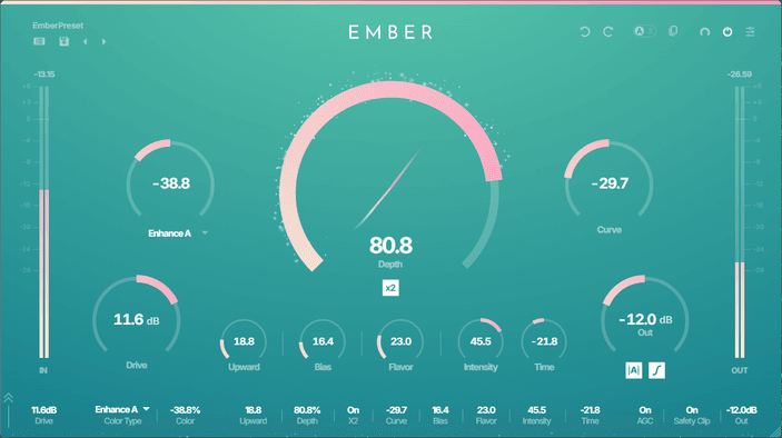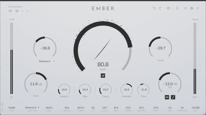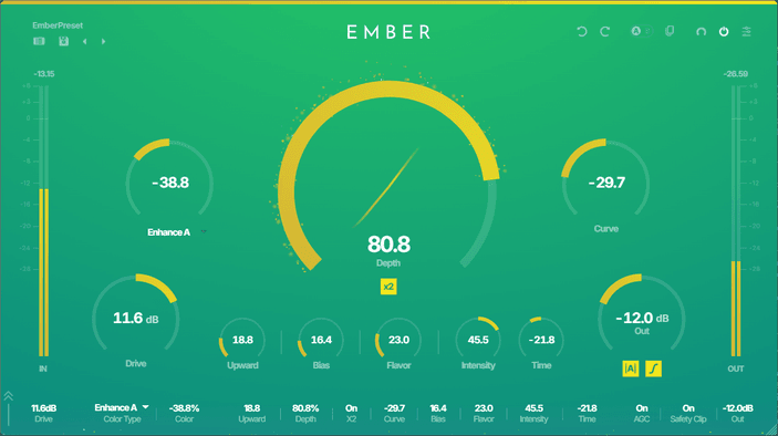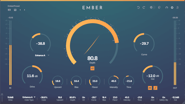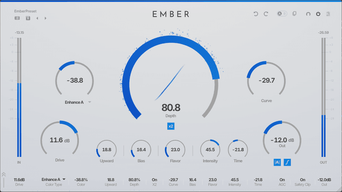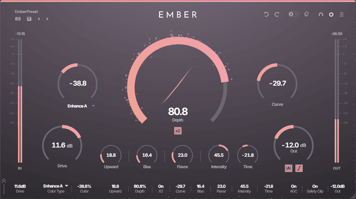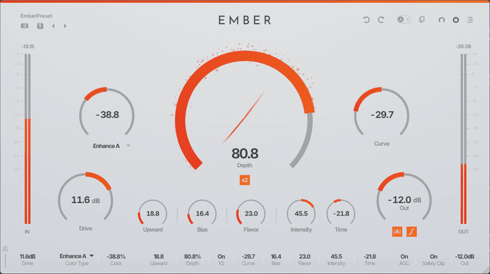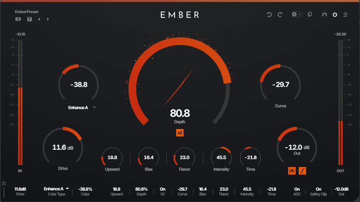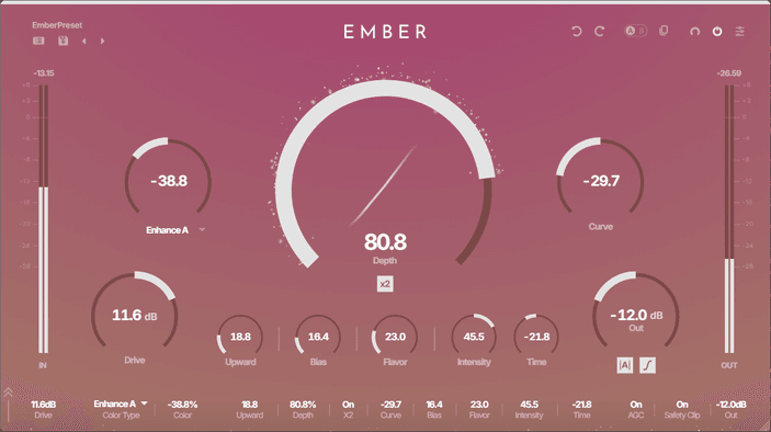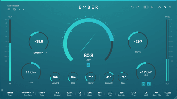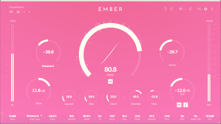 From warm, classic saturation to modern, exciter-like presence — EMBER's proprietary shaping curve covers it all.